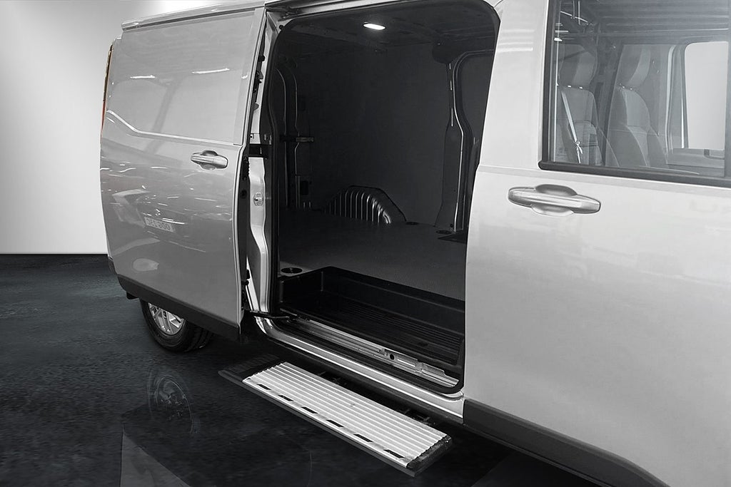 Nybilsgaranti t.o.m. 2029-05-23 eller 10.000 mil, Batterigaranti t.o.m. 2032-05-23 eller 25.000 mil,nnDragvikt 1500kgnLastvikt 945kgnTotalvikt 3500kgnRäckvid WLTP 362kmnÅrsskatt 360krnnTech Plus innebär utöver standard Power Slide Step (passagerar sidan) elektriskt utfällbart sidosteg, Automatisk klimatanläggning, 360-Kamera, 16u0022 Aluminium fälgar, nnEluppvärmd framruta, Rattvärme, 360-kamera, Apple CarPlay & Android Auto, Adaptiv farthållare, Dubbla skjutdörrar, mm mm